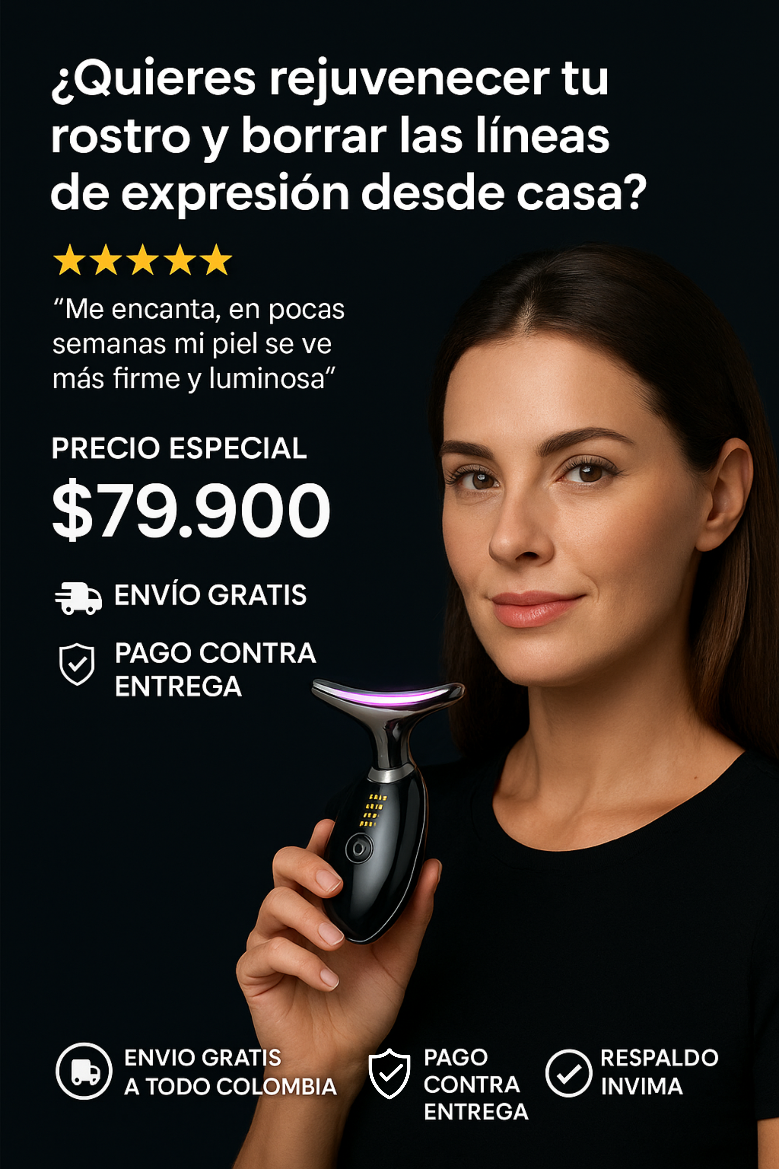 ✅ Sí, funciona con tecnología EMS + LED y materiales hipoalergénicos, completamente seguros para cualquier tipo de piel.